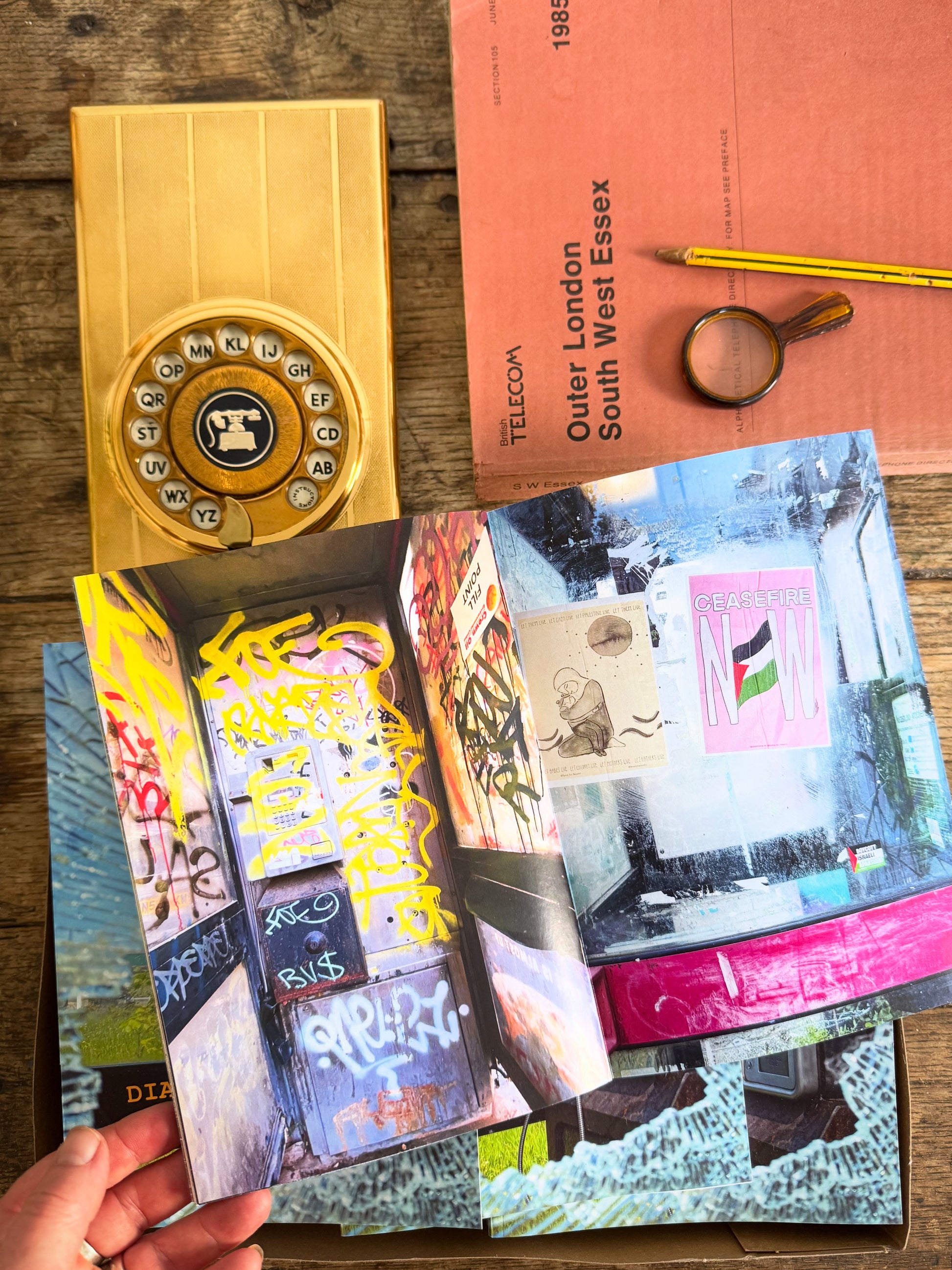 A 48 page, A5 size zine with over 50 colour photographs taken inside, outside, through and from telephone boxes around the UK.