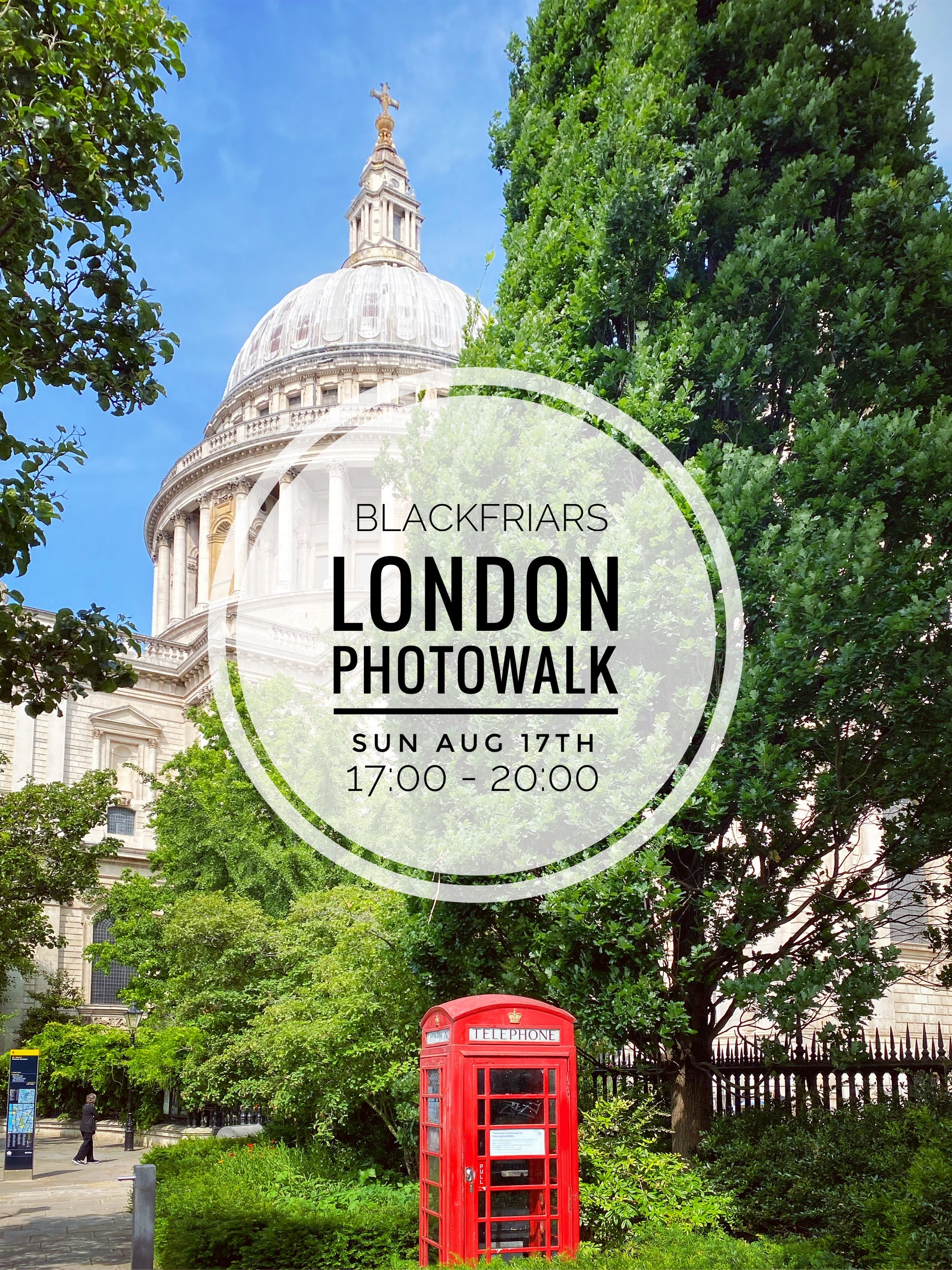The photowalks will all start at 09:30 and we meet outside Farringdon tube station or 17:00 outside Blackfriar's Station.